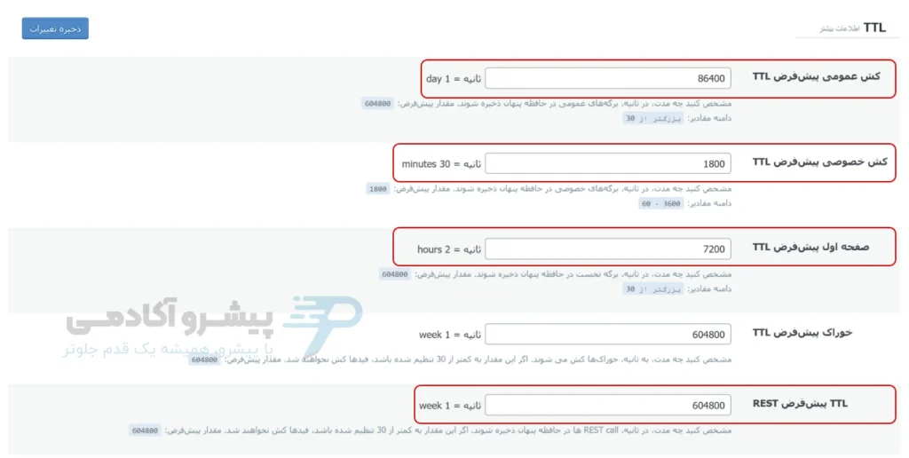 - Default Front Page TTL: پیشفرض ۷ روز.