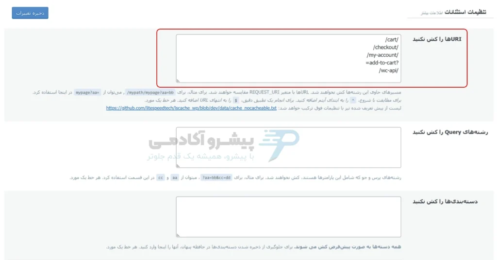 - URLهای پویا: /cart/ ،/checkout/ ،/my-account/* و هر مسیری که وضعیت سبد/کاربر را نشان میدهد.
