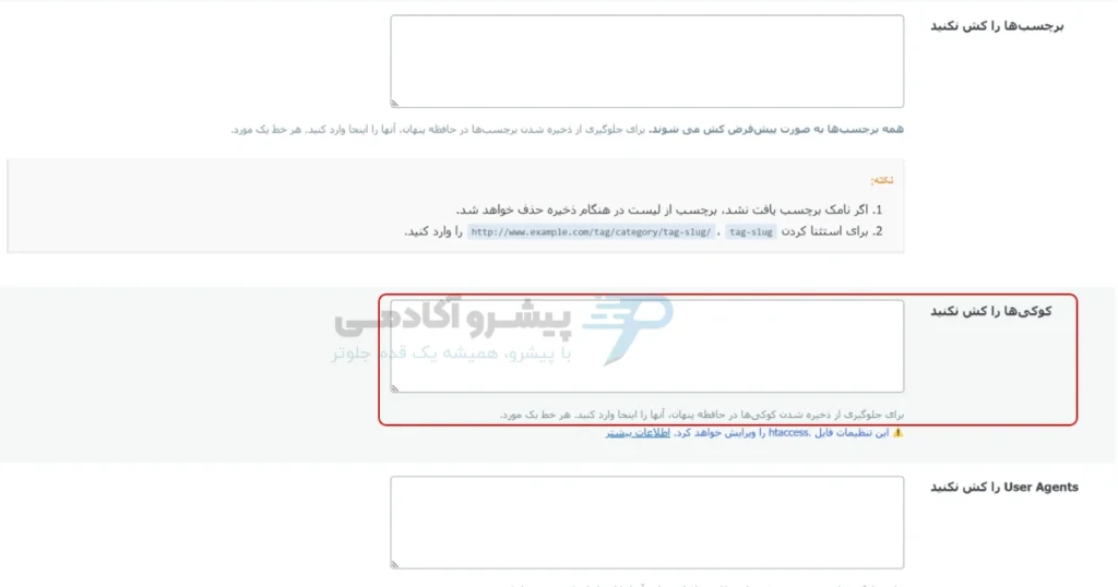 - کوکیها: حداقل اینها را در Do Not Cache Cookies قرار دهید: