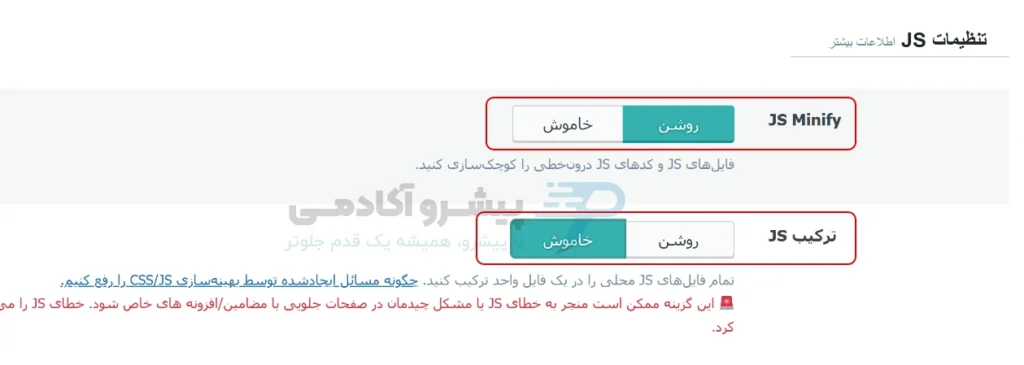 هشدار سازگاری: اگر افزونهٔ دیگری هم Minify/Combine انجام میدهد، یکی را خاموش کنید تا دوبارهکاری و تداخل پیش نیاید—توصیهٔ خود LiteSpeed هم همین است.