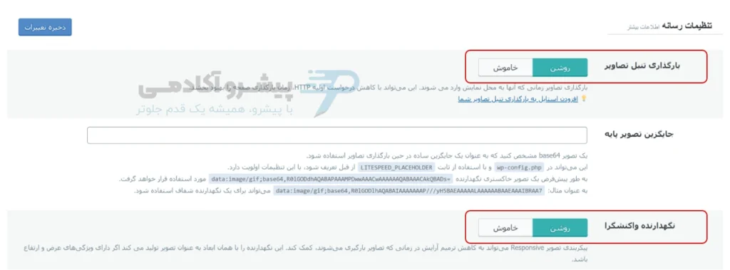 - Lazy Load را فعال کنید؛ اگر قالب/افزونهٔ دیگری Lazy Load دارد، فقط یکی را روشن بگذارید تا تعارض پیش نیاید.